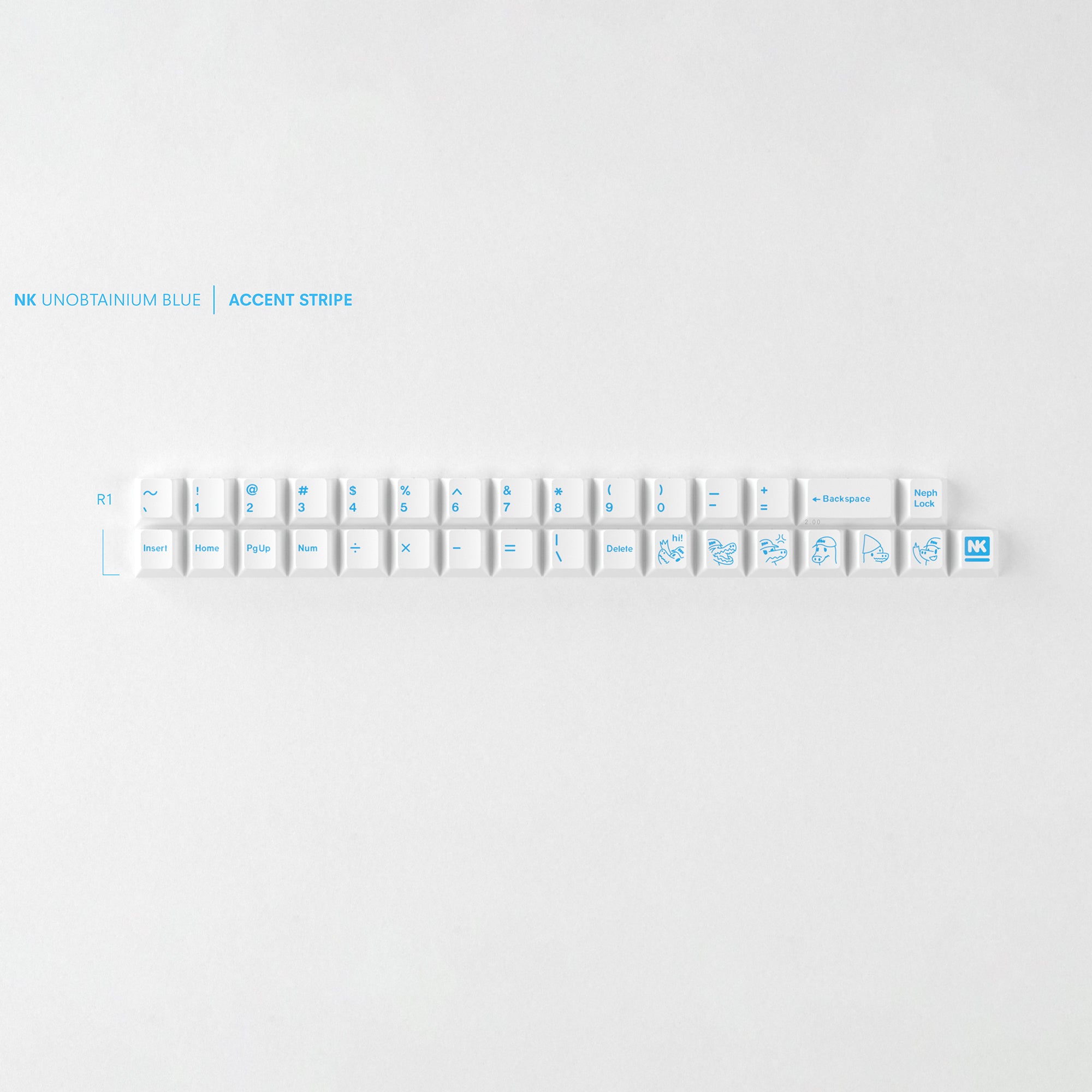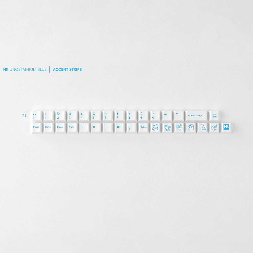 Whispered of only in the brightest corners of the skynet, it's true name long forgotten to the march of time... A keycap set so... blue that to gaze upon it brings a joy so buoyant as to cast shadows on all products prior. Crafted the official color of NovelKeys (PMS 2995C), it's already a sight to behold, but when paired with the Superfan novelty pack it becomes an elevated tribute to a company who's mission has always been to never take itself too seriously.