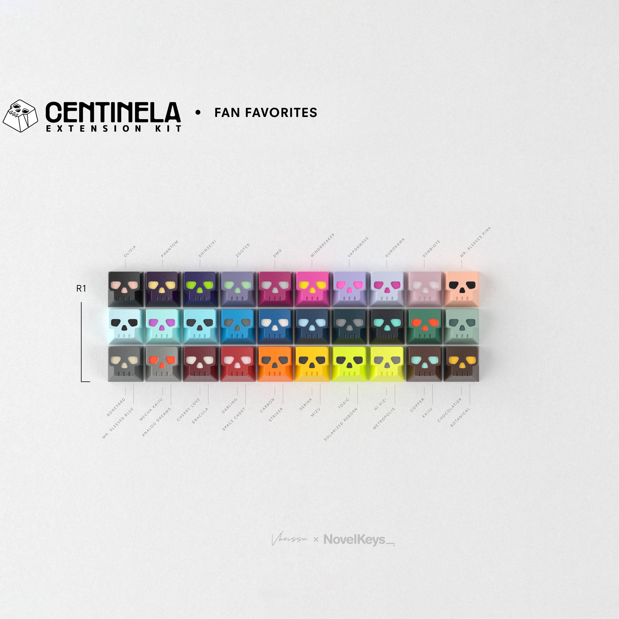Born from Mictlán Rebirth, Centinela now stands on its own. This extension kit is built around the custom skull mold developed by Vheissu in collaboration with GMK, now reworked into some of the hobby’s most recognizable colorways. What began as a set-defining sculpt expands here into something broader: a collectible accent kit designed to live beyond a single release and across a wide range of boards, palettes, and builds